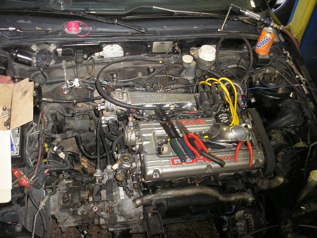 So here's my project. I got the car in Febuary from a kid selling it on MNSC. The car was mostly stock at the time, it just had a small 16g, 2g exhaust mani, a small Spearco FMIC, a boost gauge, and a K&N filter. It had a boost leak, and some crappy plugs and wires when I got it, so the first mod was to get rid of all the worthless Emissions crap, and throw in a decent set of plugs and wires. That cured the boost leak, and made it run better, but I wanted more.