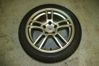 A set of 17x8 Rims, I honestly cannot figure out what they are, made in Italy? Mounted with Blizzak LM-22’s used for only one winter with only about 4k miles. I purchased the combo from tire rack in ’06 for 1500.00, I had them on my evo – asking 750.00