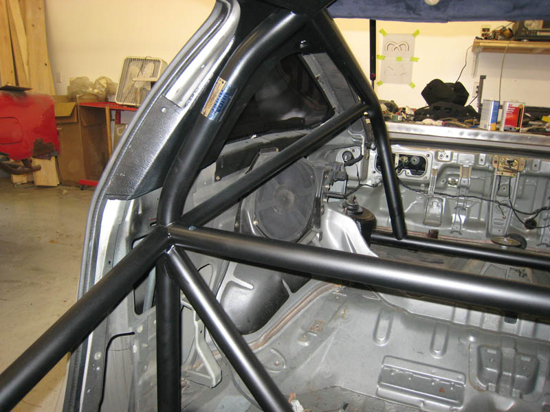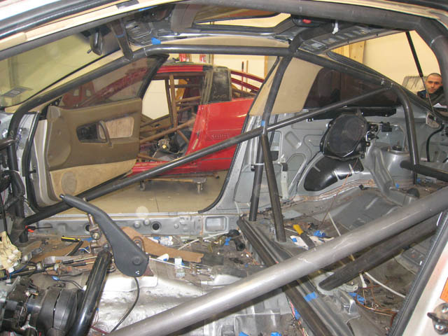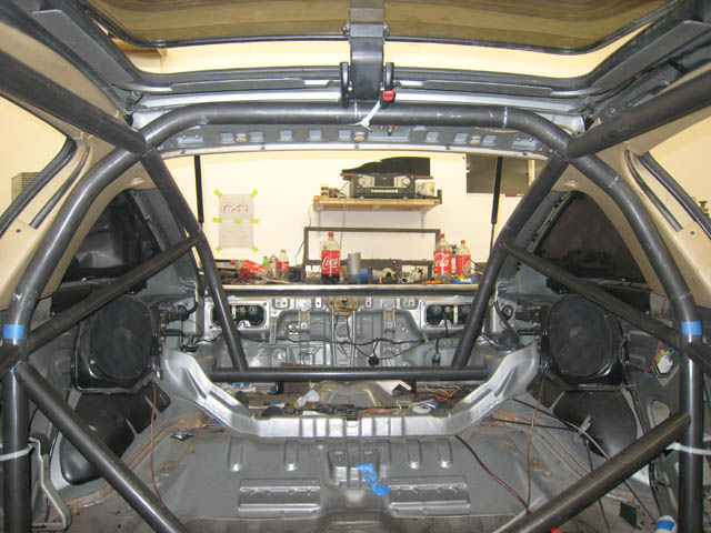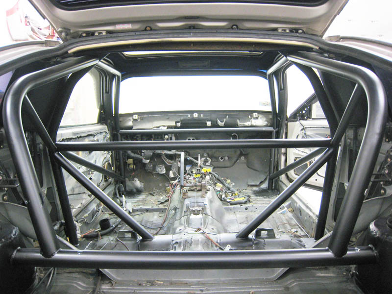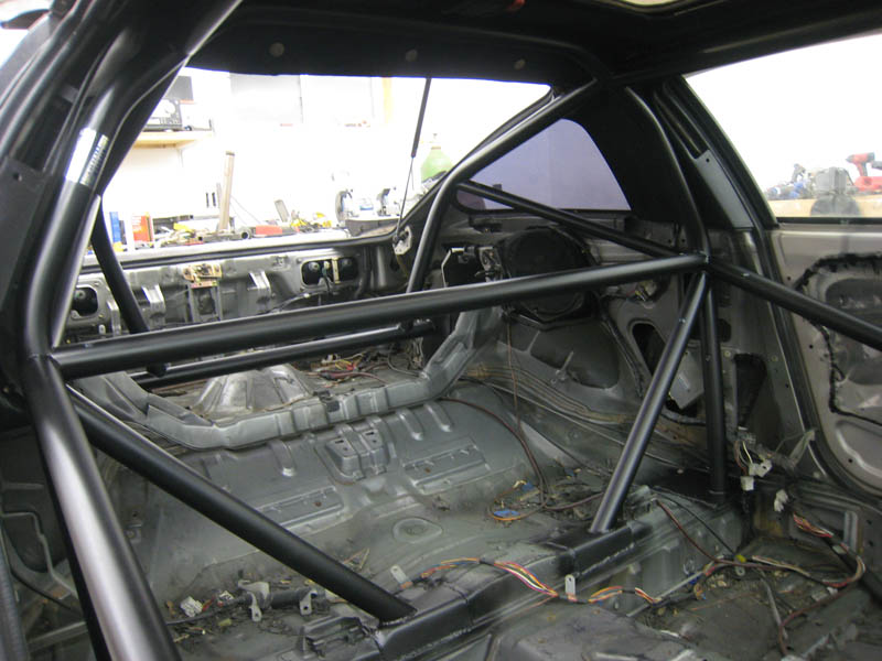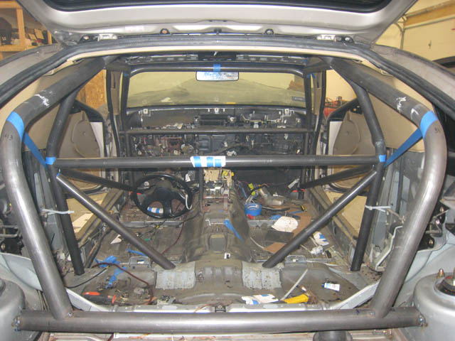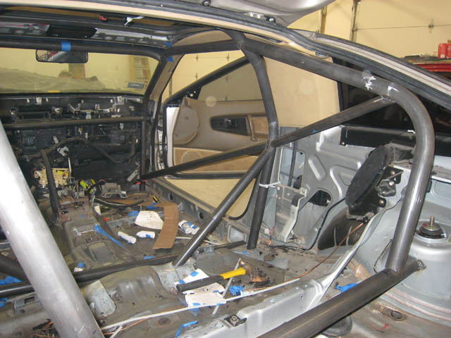 The cage is not complete yet, it is mostly tacked together and everything is notched perfectly. I still have to weld in 6x6 plates everywhere, put two more supports on the rear strut tower brace and turn into some sort of a crazy contortionist to get everything tigged together ... but it's fun, keeps me out of trouble and gives me something to look forward to in the end.