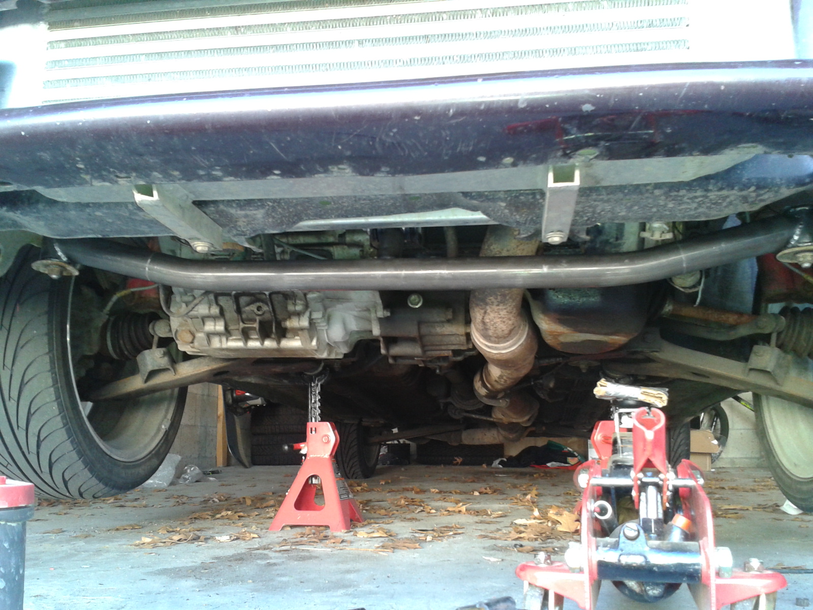 gotta say with the front crossmember from bulfab. it is a great piece. i got the single piece bar. and it cleans up a shit ton of slop vs just running the stock front crossmember. the stock crossmember alot causes the engine to pivot back and forth because of the rubber mounting bushings. the tubular front crossmember has solid mounts to the car and does not pivot as the stock piece did. very stable and offers A LOT more room to get to things from under the car.