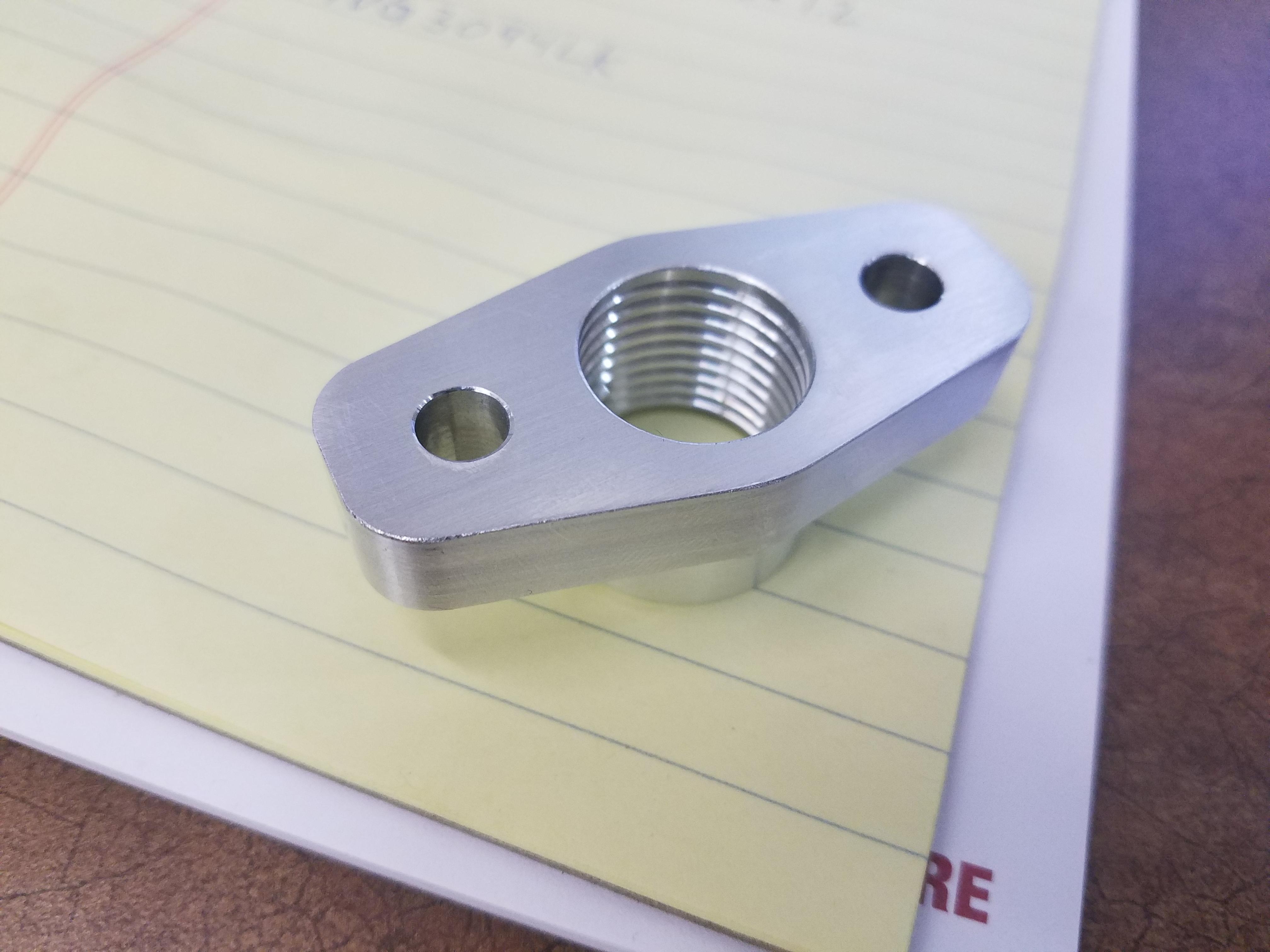 I like that drain flange, i need to buy one. I'd like to make a complete .7mm+ drain line for my new turbo once i finish with the 16G.
