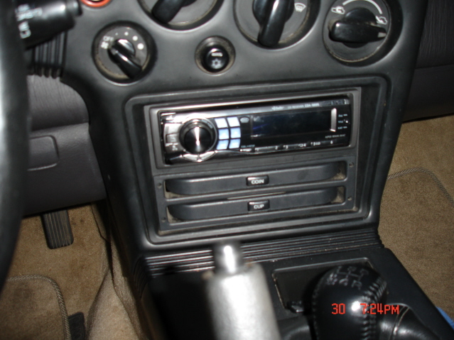 I installed my Alpine deck I got half off from best buy, and my sweet custom single din cup holder/coin tray (haha)!!!!