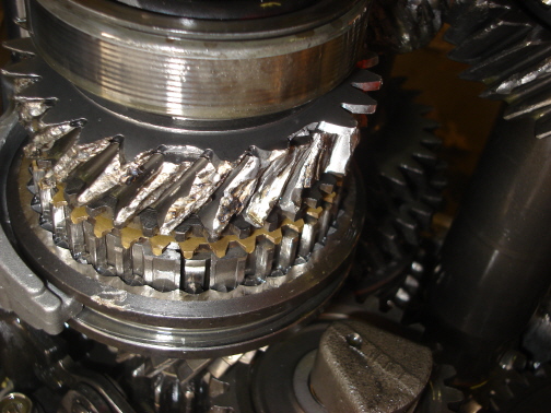 When I was getting ready for the dyno day I broke my tranny. today I finally got around to pulling it and heres what I found. Aparently spinning the tires in 4th gear is hard on the drive line.