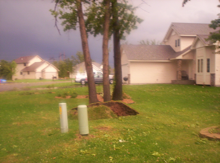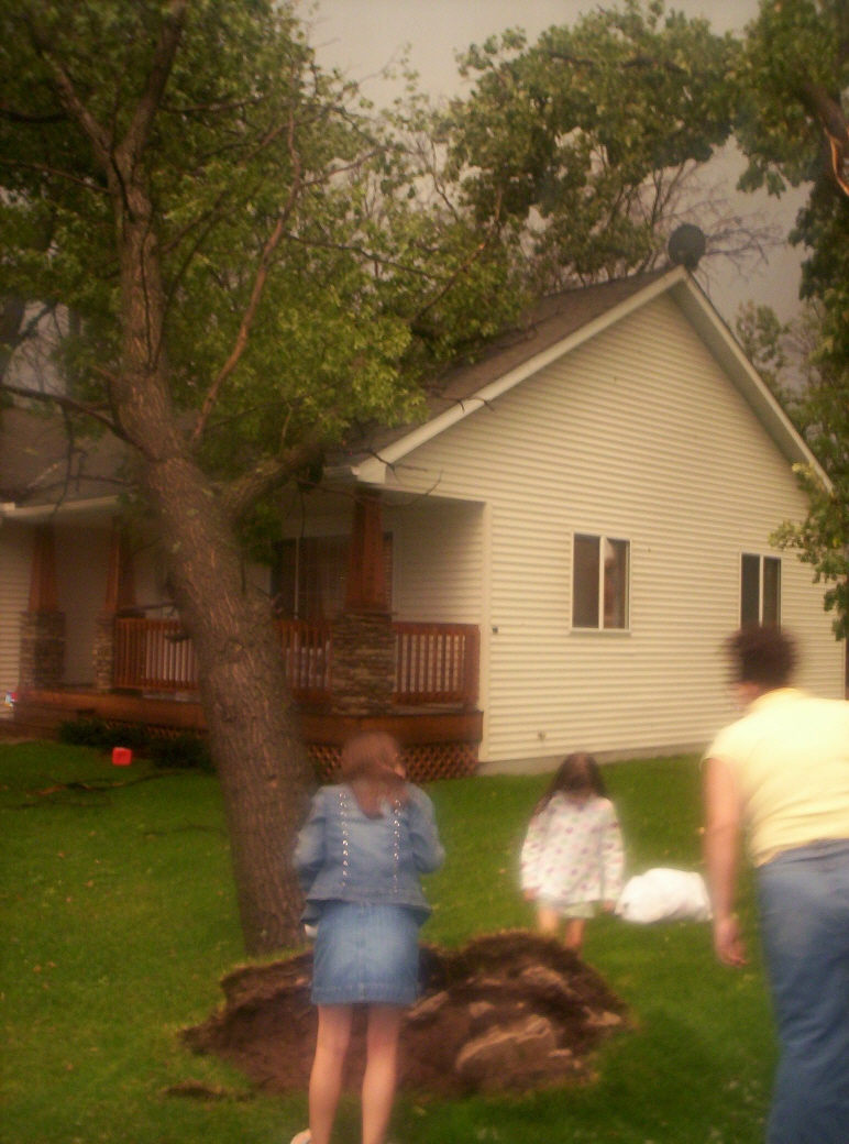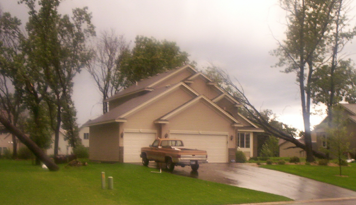 Heres some pictures of the storm damage in my neighborhood in Big Lake. We got hit pretty hard. luckly my house only got a little damage on the siding from hail. my neighbors tree blew down into my backyard, and there is about 4 large oakes uprooted and a few landed on houses.