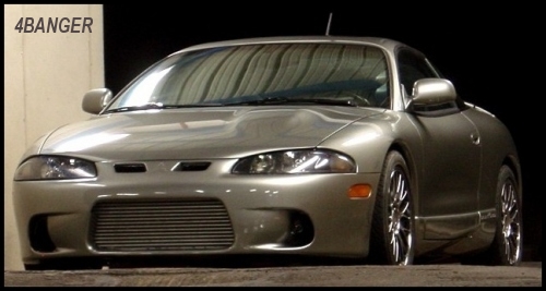 It is a modified stock 97-99 front bumper...it has the vents cut on either side of the Mitsu emblem and it has the black portion at the top of the mouth cut out.