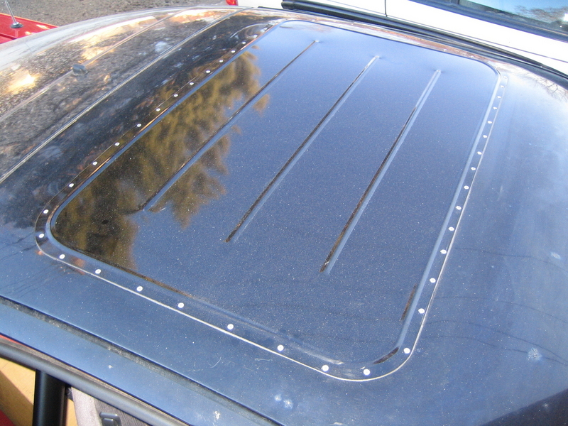 My advice is to wear a bikini next time you take a picture that reflects in the windshield. Actually, you'll either have to rebondo it or replace the skin. Trying to get the contour right by pounding it out would take a serious pro. If you want to wait til next winter, I'll give you my whole roof skin with the sunroof. I'm putting the non-sunroof skin in that I didn't get to last winter. It doesn't look to tough to swap except for taking out the windshield.