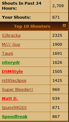/\ I think all those people should have their shoutbox privilages taken away every other week. Or at least the value of their shouting/whoring should be exponentially decreased.