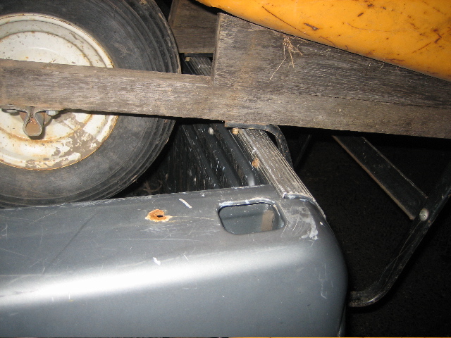 I open my eyes, the P.O.S. is still, somehow, hanging on the back of the truck!