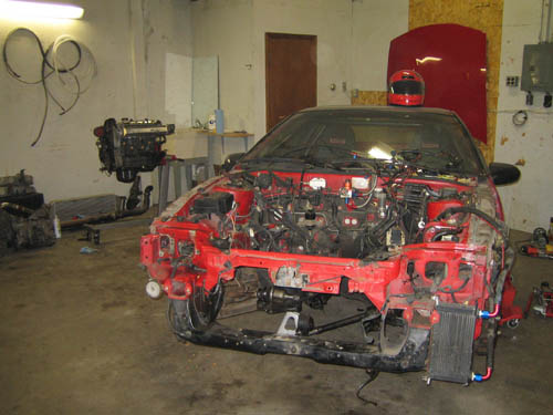 Enough with the BS ... back to the project at hand. The idea is quite straightforward. Remove floorpan fron the DSM, cut the front, built a 25.1E tube chasis from chomoly ... fit it in the DSM, get big-ass tires and auto tranny, a beefy rear-end, a GT4202RV, fab whatever is necessary and go fast.