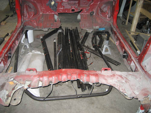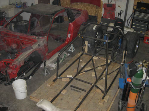 I stripped the hubs of my Quartermaster this fall and the car was down for a while. So Tim (EvilEvo) and I decided that both the EVO and the DSM will get lighter and get bigger turbos. Initially we both wanted to partially tube the front and cut out the rear floor. Then somehow with the help of a lot of Vodka-Redbulls we decided that we should go RWD ... then later it all evolved into lets hack the cars apart, sell all the stuff we don't need (everything), buy a welder ... learn to TIG weld and build 2 full tube chassis cars.