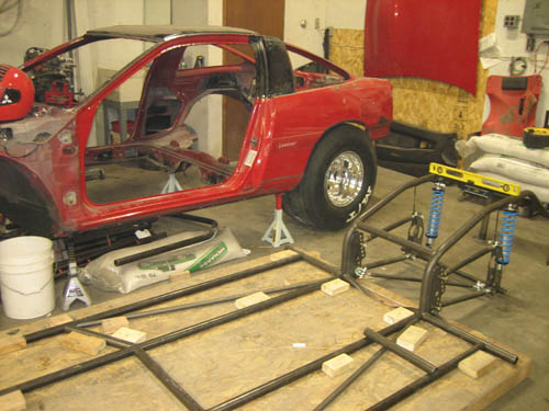 Damn Vassil, I was wondering what you were doing when I saw you selling stuff off on NABR. Are you going tuck the slicks way under, or leave the back high like Buschur's old RWD? I'm guessing by the slpe of the fenders inward toward the roofline, you'd either have to mount the slicks way inboard, or keep the rear fairly high. Looks awesome, you guys have got balls. Let the Grey Goose flow!!!!