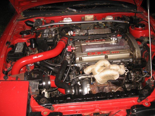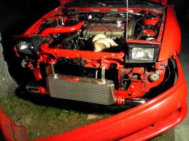 3 inch turbo back exhaust)we have messed with it so many times i dont know what brand it is anymore) 660cc injectors, safc, front and rear strut bars, fmic, precision scm61 turbo, 38mm external wastegate, and a 4 bolt rear end, and an act 2600 are now all in it.once again, just showing a few people who cant see it in perosn that I havent shown in a while.