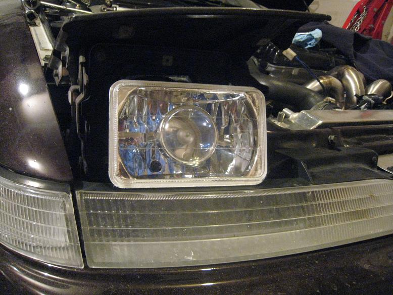 Just threw some new headlights I got off ebay for cheap. No more sealed lenses. These just use common H4 bulbs. Ricer Polish Pete at Maple Grove Goodyear hooked me up with some H4 pigtails for dirt cheap, that I soldered in just now. Worked like a charm, thanks Pete! I have to do a little grinding before I can mount them in place though as the backs are a little larger then the normal ones.