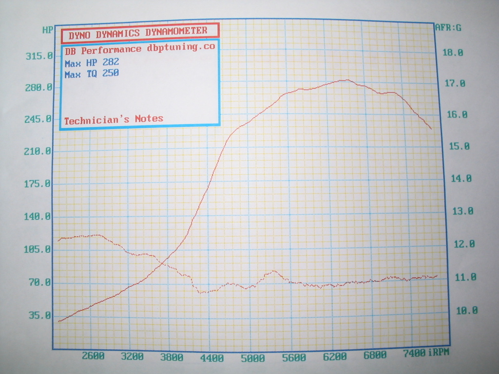 Tuned at DB Performance, made 282 awhp 255 awtq @ 20 PSI (Bad Gas, could use retune)