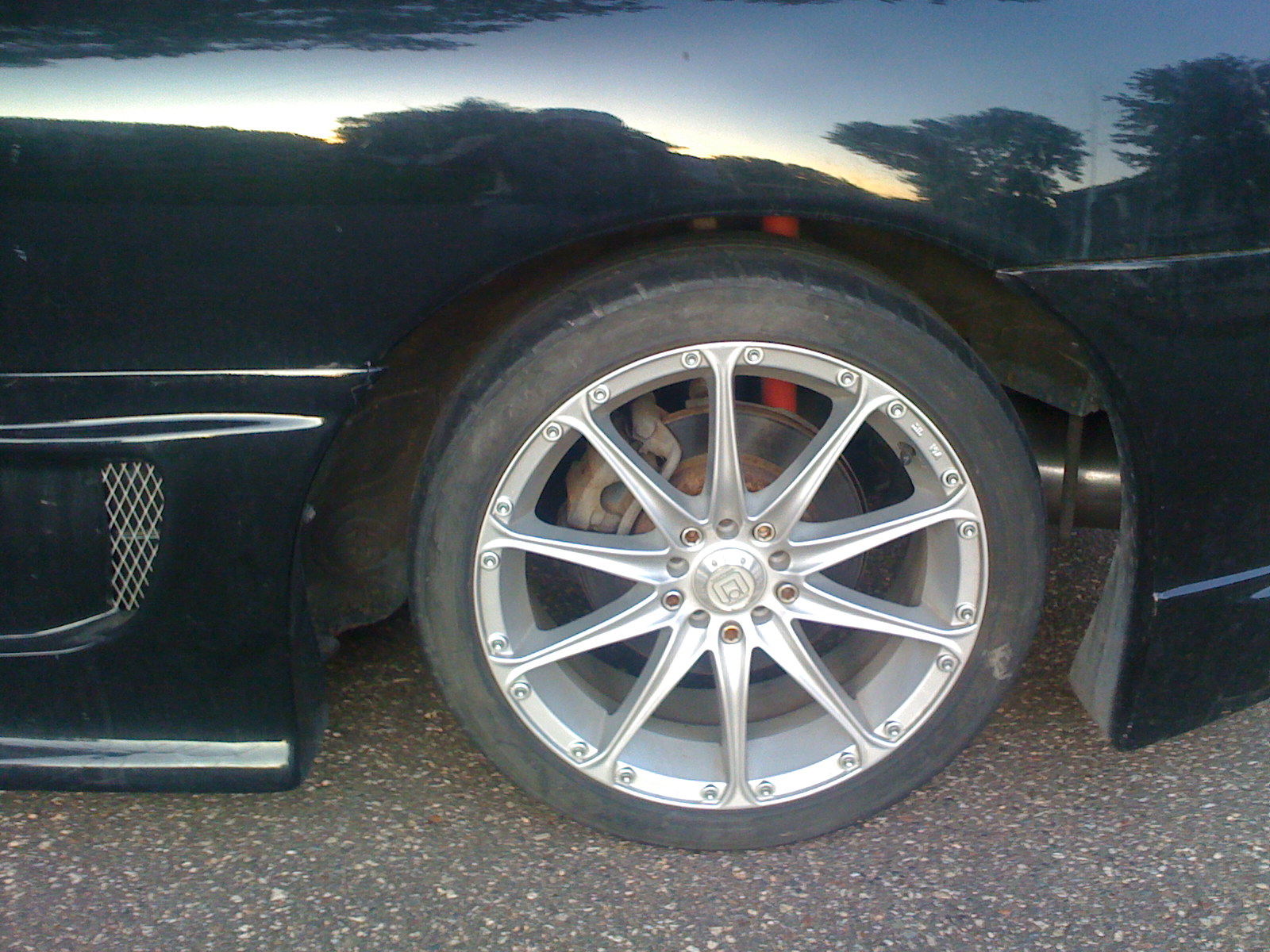 I believe it has drag radials with a little tread left on 17" rims