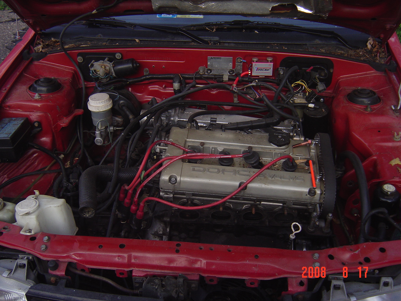 The car is back together for the most part. The eprom will need to be programmed for the settings of the car and installed (can't rmemeber if it is socketed), the turbo setup will need to be installed, the exhaust will need to be modified to mate up with the new turbo (have downpipe for off the turbo), intake setup installed, vacuum hoses and misc lines installed, possibly install a new water pump (hg was blown in it and it might be dirty from that. New timing is already installed and set). I can't really think of anything else off the top of my head. The tranny is stuck in gear and is hard to move currently. The car has new wheel bearings and the suspension is in good shape. The interior of the car is in mint shape (probably could sell to the people on the colt forum) and the body is in ok shape. Some of the paint is faded, the car has a few dings and hail damage but doesn't have any rust.