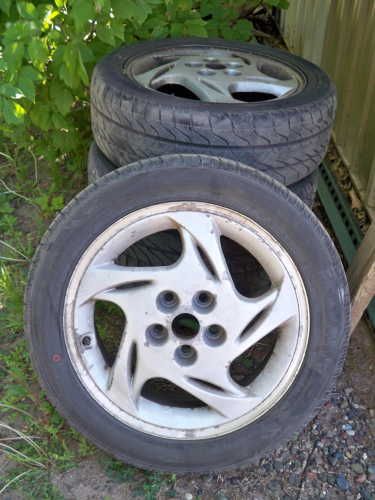 Ok for the rims i took pics of all 4. They are dirty and have some curb damage. They can use a good cleaning maybe repaint them if ud like. some of the tires are worn some are brand new. They are pending sale on sunday night for $100. if any one else is interested let me know.