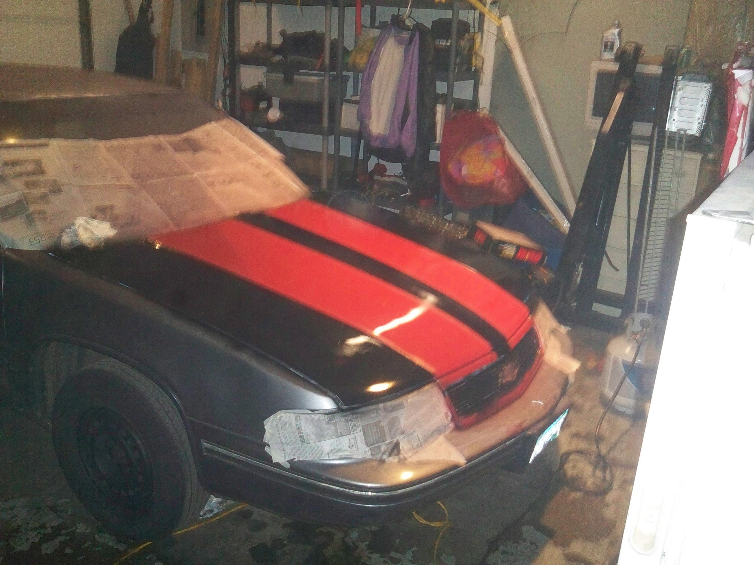 just cause its rattle cans dosent mean its not the right way, 90% of painting is in the prep work and the sanding. looks pretty good all things considered, should have givin it some more time to dry before you did the stripe though.