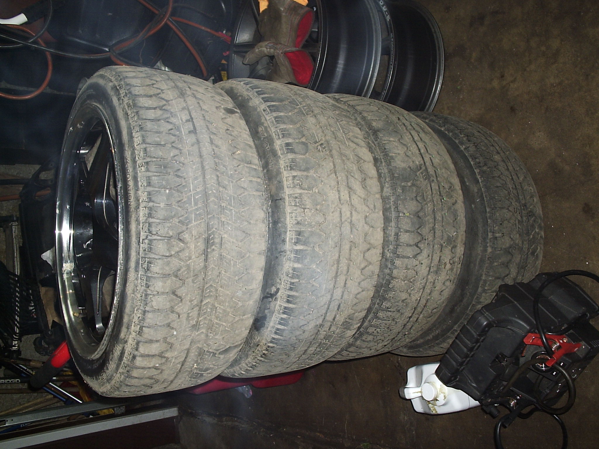 The tires that are on them are shitty, But they will work. And also one of the rims had a small crack in it and was welded by Jesse at primo. I bought them like that.