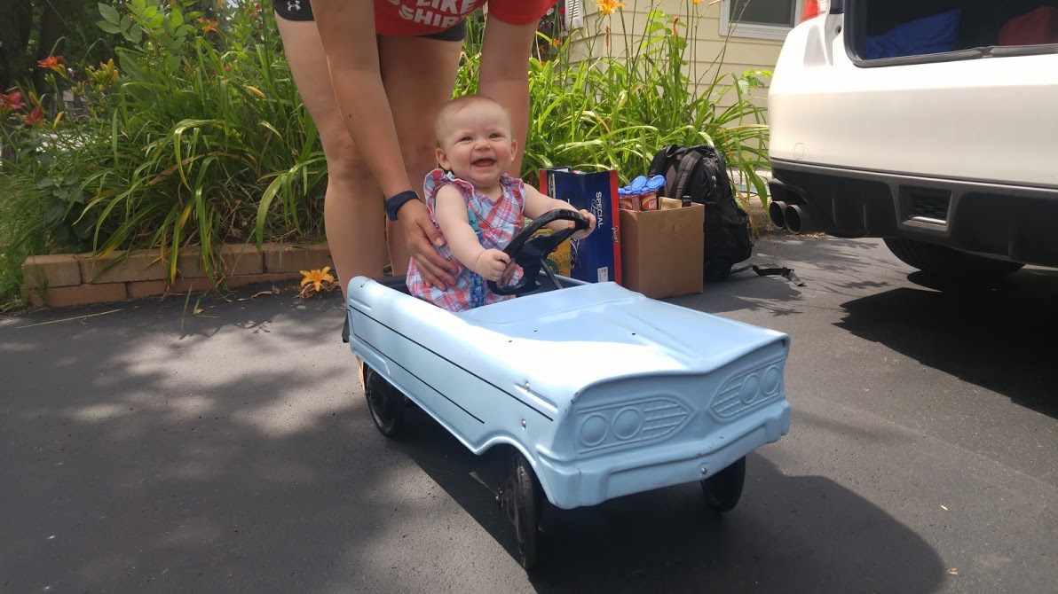 I am building a pedal car/wagon project to pull Norah around in. I found the startings of my project this past week at a swap meet. its a 1960's Murray V-front pedal car.
