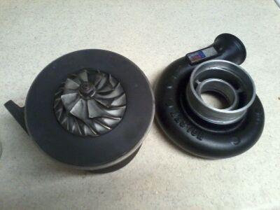 I am selling my 8 blade hx35. It might need a rebuild but i am not completely sure. Both wheels are in great shape, no side/side or in/out shaft play what so ever. When assembled the turbine wheel scrapes the heat shield which makes it difficult to spin. But when the compressor and turbine housing are off with the heat shield removed the shaft spins freely. Seals seem to be in good shape. It came off a running cummings and has the stock 12cm turbine housing.
