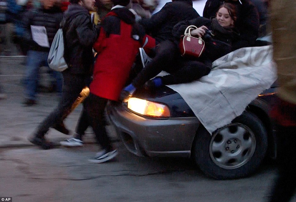 Lake St. Subaru hitting a protester.