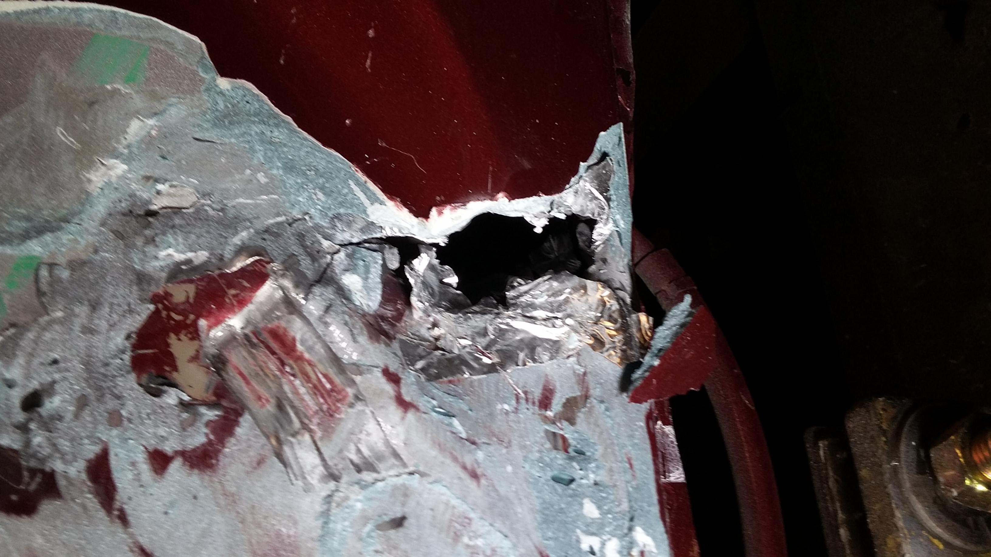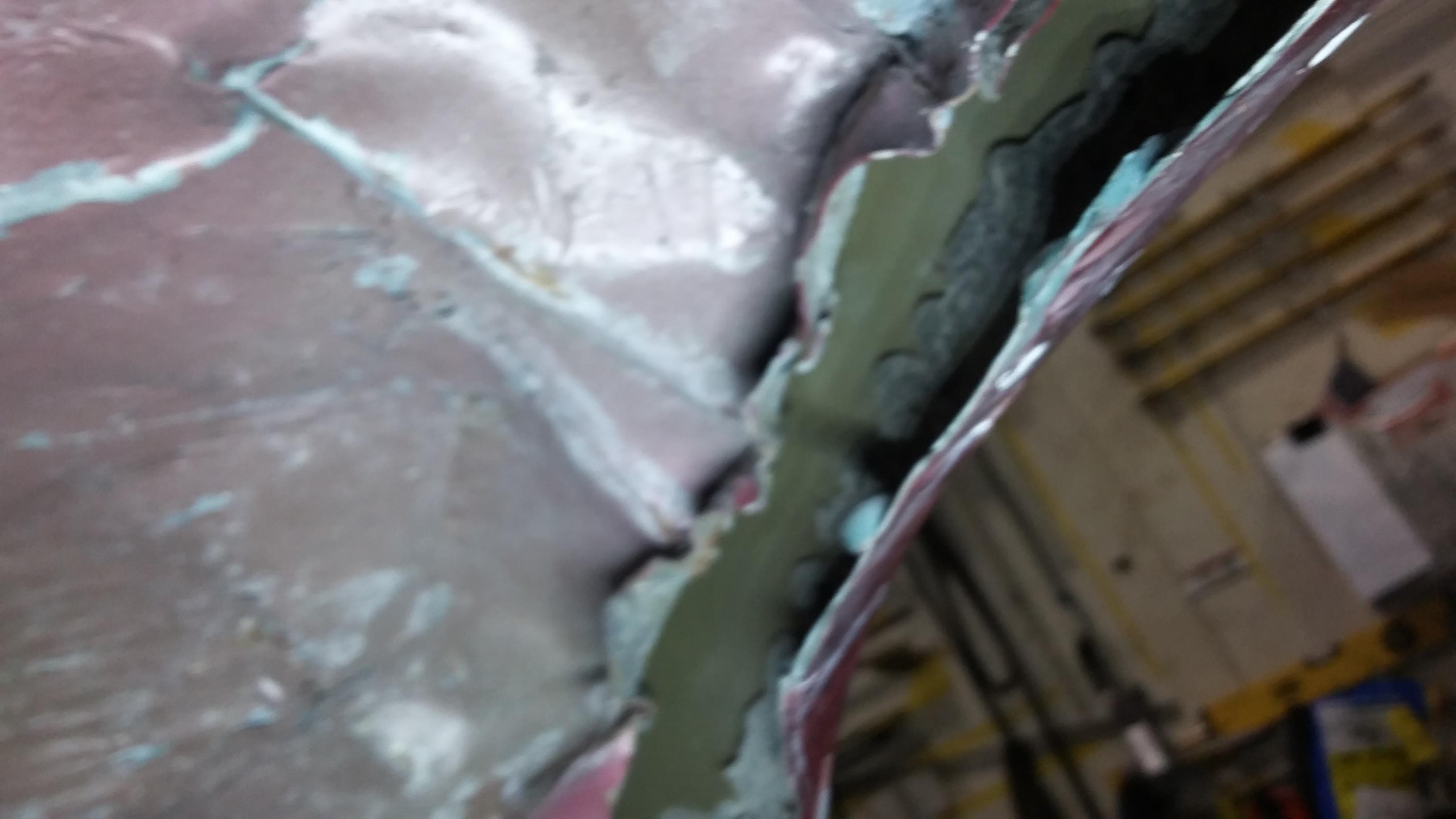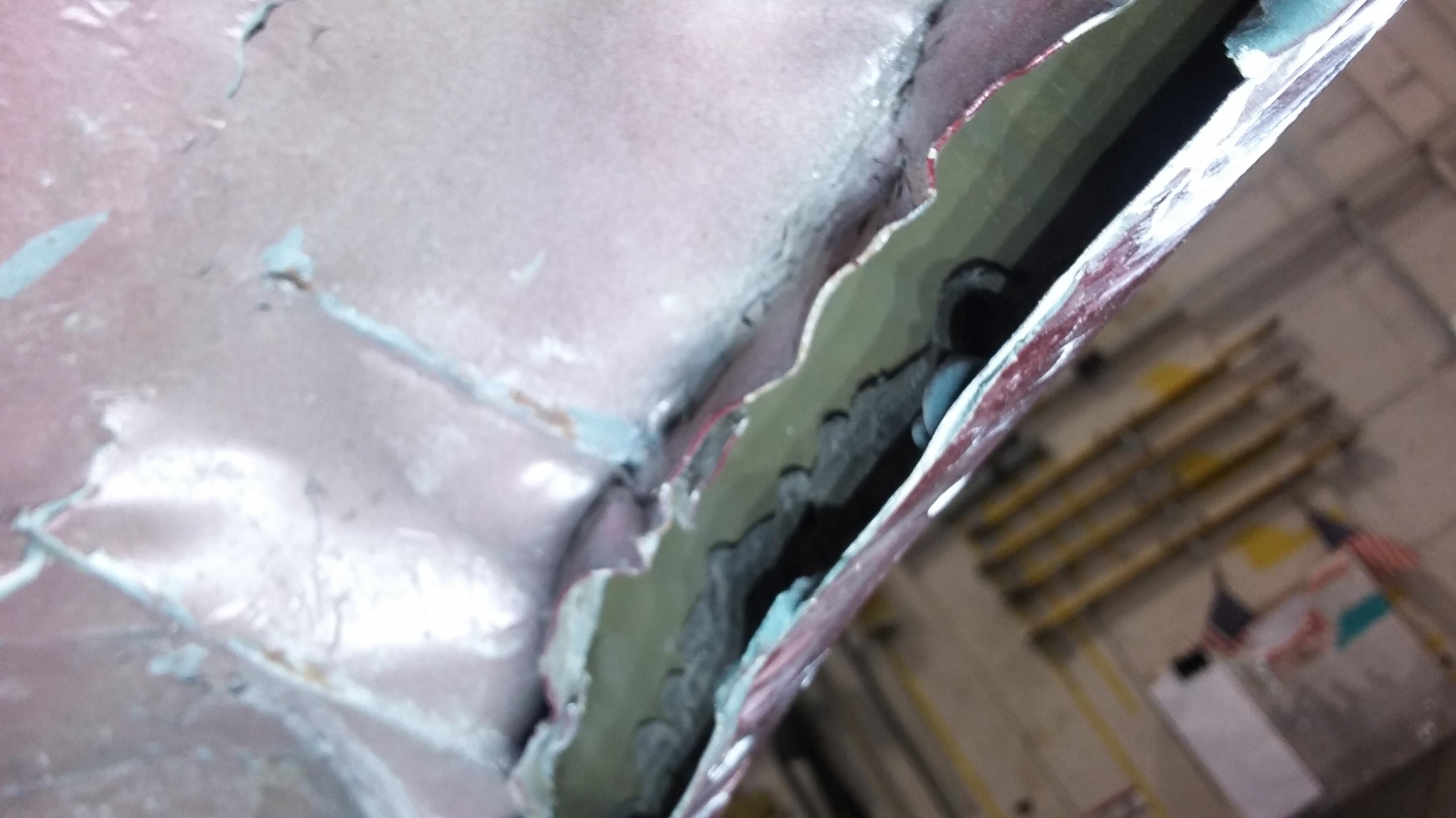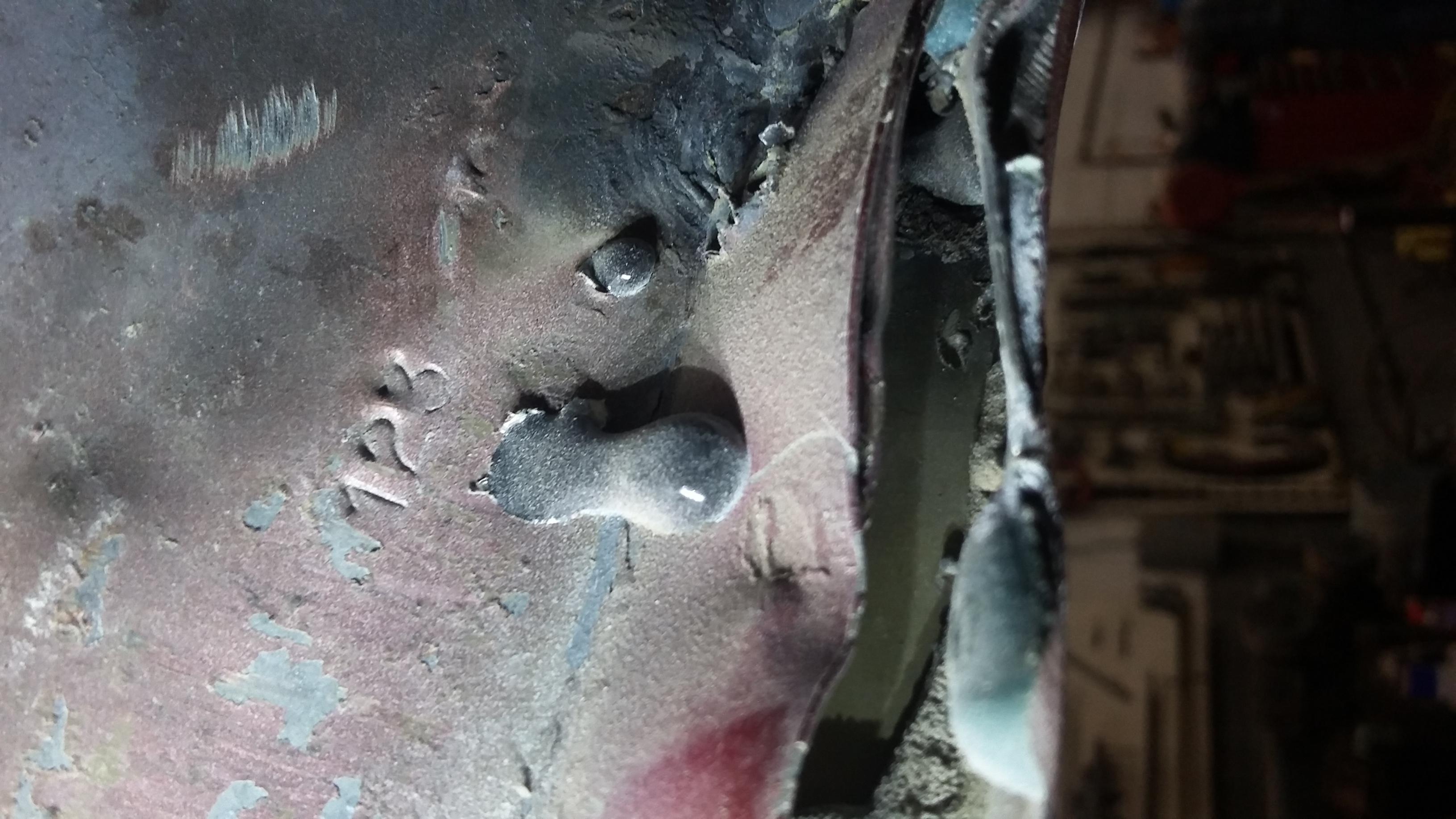 So in these photos shows were the new quarter panel meets the rocker. It's shows how my bond and filler the body shop used to make this think look right. The hole you see in the pics is where the put some hvac tape so the bond wouldn't fall in. I found in some spots the bond / duraglass was over 1 inch and a half thick.
