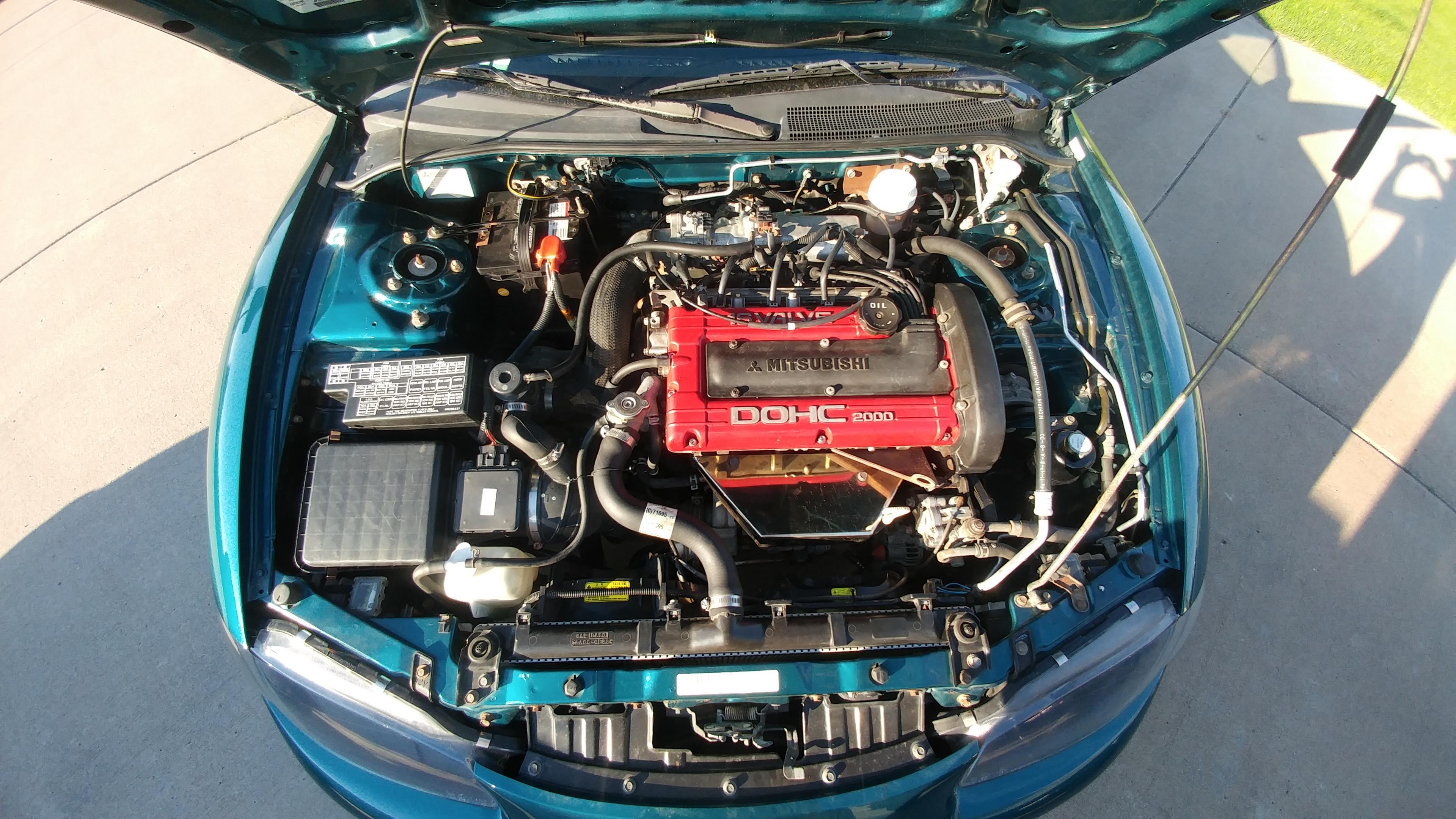 This past weekend we got some time to check over everything. Put a new valve cover gasket on since the one that was on it was leaking like crazy. Also gave the engine bay a good cleaning and it turned out like it just came off the showroom floor. Also threw my front lip that i had on my old 2g on it. More to come