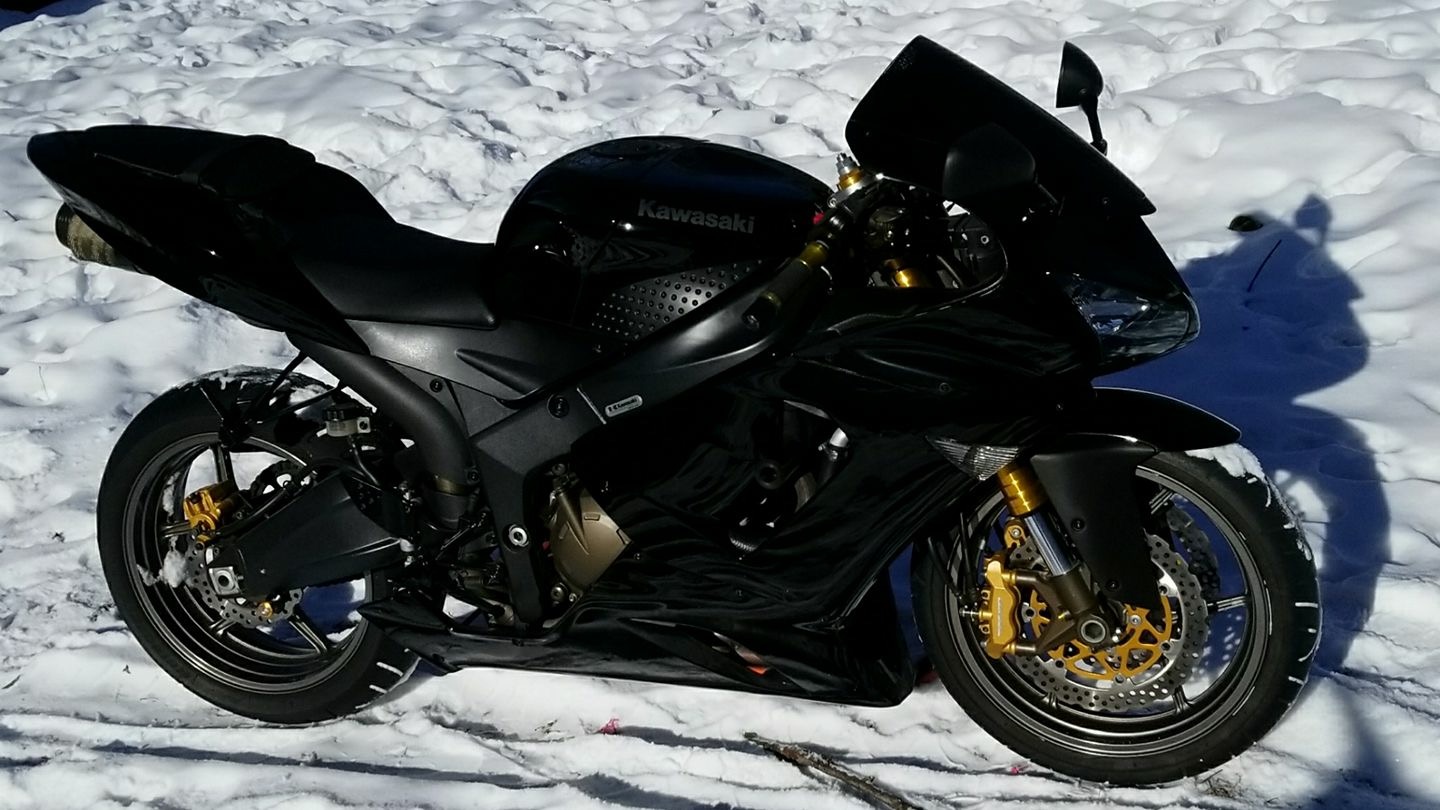 So I have finally picked up my first street bike and im pretty excited about it. Its a 2006 ninja 636 and from what I hear they are pretty decent bikes. Its my first street bike but I have been racing motocross since I was little so ive been around bikes my whole life. Just on dirt. I have riden many of my buddies street bikes and harleys and just love the feeling of rippin on the road and being open if that makes sense. Now we just wait for spring time to come around.