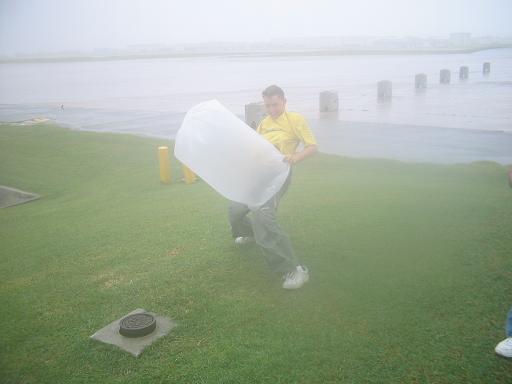 What do you do when the largest tyhpoon in 30 years hits, and they make you spend your entire 3 day labor day weekend at work because of it? Well you go out and play in the 100+ mph winds of course and make paracutes outta trash bags and let em drag you around!!