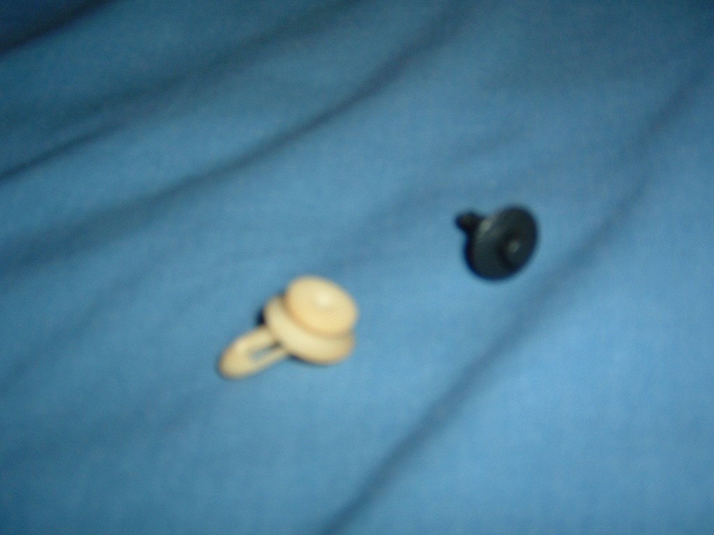 Sorry about the blurry picture, I'll see if I can a bettery one. Basically the A-pillar has a few spots where the clip slides into and then the clips are pressed into a set of holes on the A-pillar frame when the A-pillar piece is secured to the frame. (I think that makes sense.) The black clip can be found where the rear interior panels are attached right below the driver and passenger side rear windows.