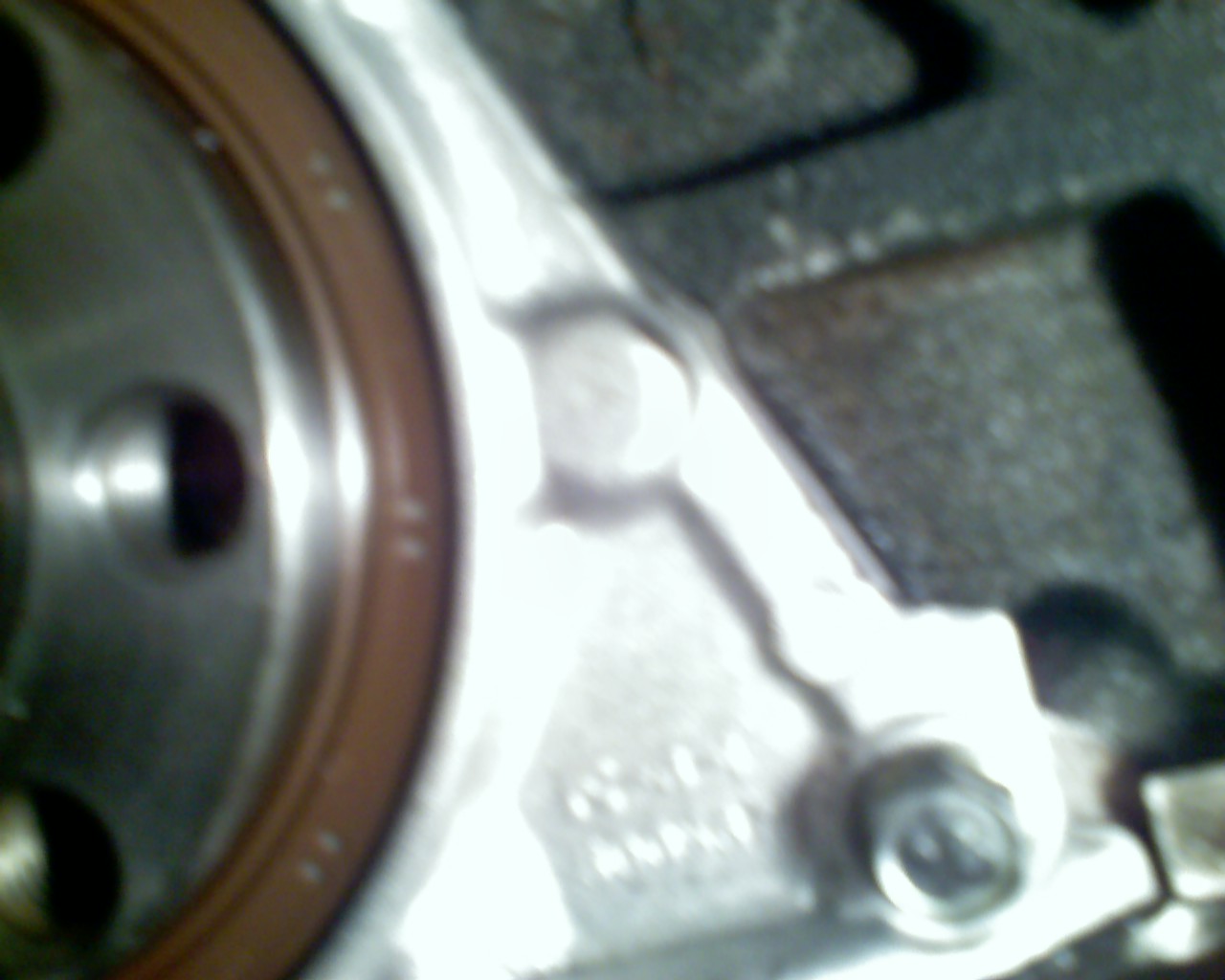 Too much silicone, and pushing down on the rear main housing??? Just a thought, but I don't see how it could have moved when 5 bolts plus rtv is holding that rear main housing in place. == Plus 2 pan bolts go into the rear main housing so I would think it would pull it the other way if anything and give it a gap on the other side if anything, but I don't know.