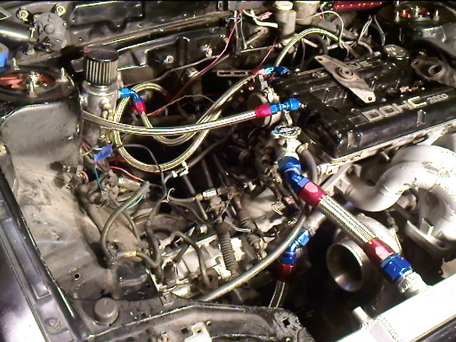 Currently, the car is bumperless, timing belt less, fuel injectors, and etc. John is redoing wiring and moving the MSD, fuse box, and mocking/making my 3" upper ic pipe. I ordered a new red tial wg, got my electric exhaust cutout, and then i gotta put it all back together. JMF DRAG manifold is on the car, but for mock up. The new q45 tb i got i can actually fist..it's serious. So, that's the plans/car as of right now. Once done, it's tuning and paint.