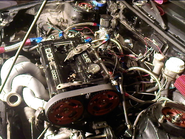 "Progress pics. manifold off. fuse box m s d and etc removing and relocating. cam gears installed. pipes mocked up. etc.