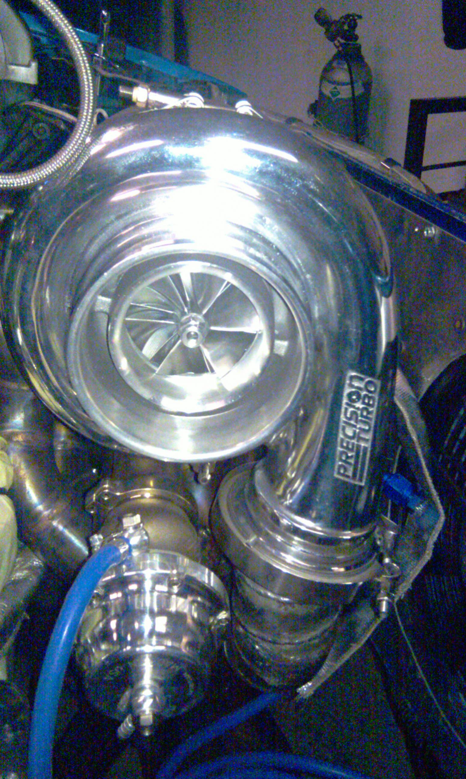I upgraded the snail, it’s a PTE billet wheel on my 42R! Should work great, I have heard that one of the Buick guys picked up something like 125 whp with the billet upgrade. It’s the same compressor wheel used in MAP’s Evo drag car. The old cover and cast wheel have turned into garage art. More to come later.