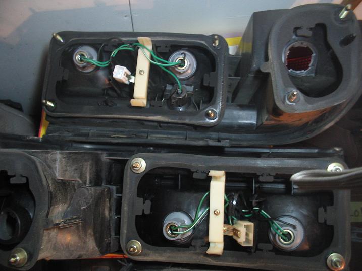 Well so far what i did is just remove the litte bulb wiring harnesses off the both sets of tails, and attached the 91 bulbs and plugs onto the 92 tails. Looks like it will work fine. All I'll have to do is take off that extra bulb socket off the 92 harness, and run some wires over to the other blinker bulb wiring. But now I ran into another problem. The little socket dealy for the blinker on the far corner of the tails, well apparently they were a different design, becuase it will not plug in. CVD, can I gank these 2 sockets off your car? It's just that one socket the bulb plug into, the ones that go into the very ends/corners of the rear tail lights.