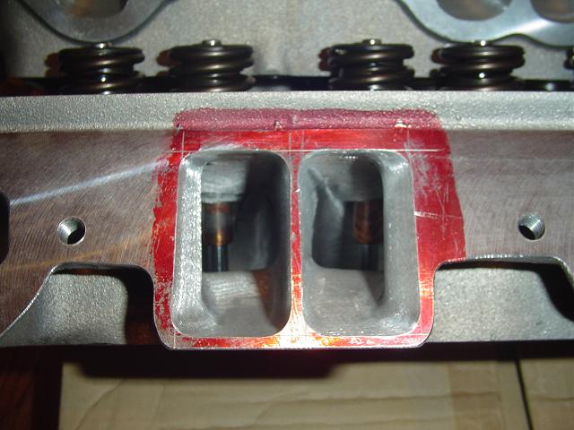 Tunnel ram intake manifold, short runner, worked carb flanges & ported at plenum and upper/lower ends of runners. Cast aluminum. When flowed with the above heads on the bench only slowed flow by 1%