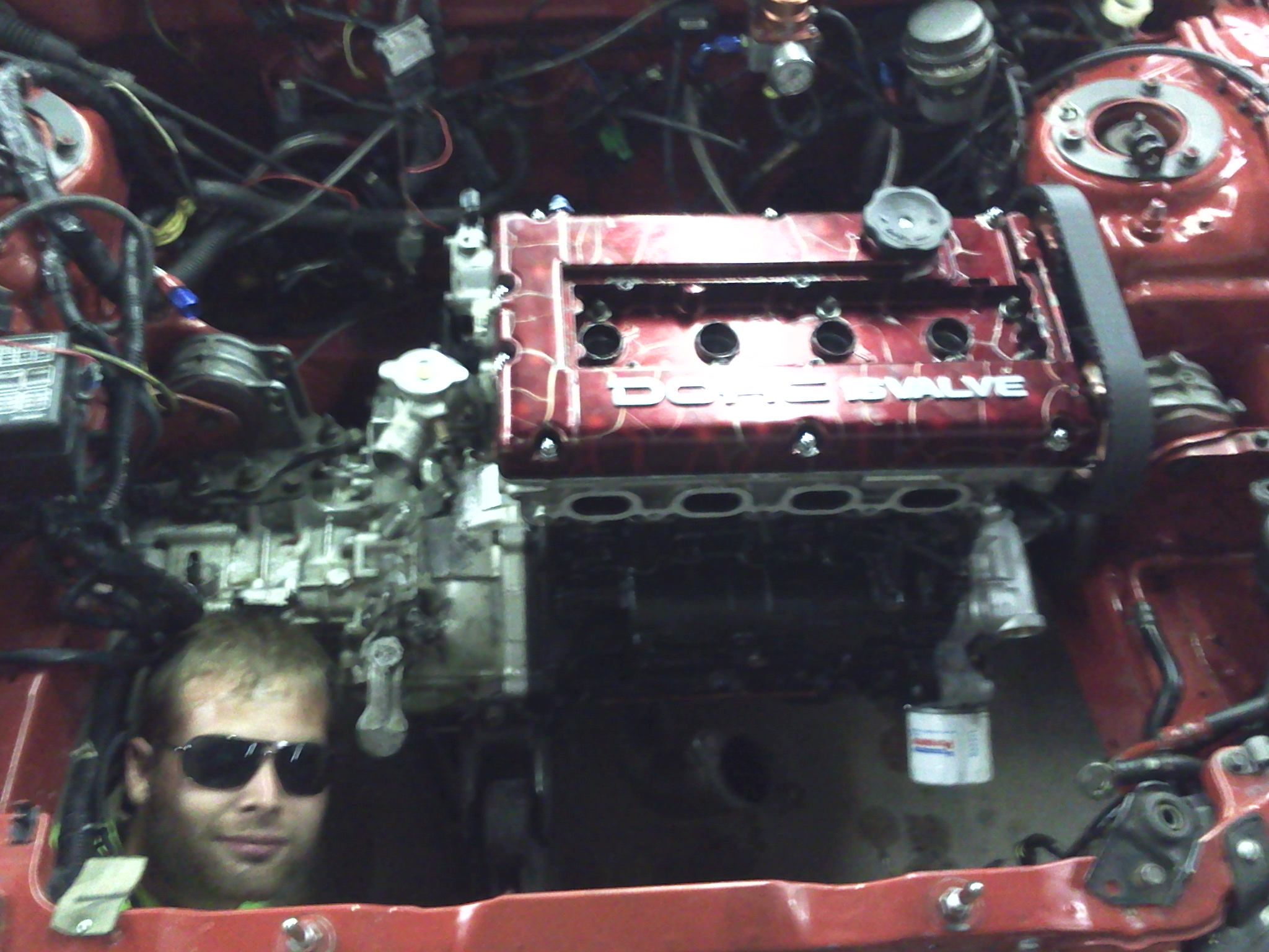 ok 2 days later and everything is out. no matter how hard i tried I still ended up with a bag of bolts. I was happy to see the rods and pistons are absolutely perfect. head and cams looked good. I am getting a good deal on another 2.4 block and crank, but I really wanted to go 6 bolt 2.0. Oh well for now I can build on a budget and still end up with the same engine I had and save some money. If I get this thing going by pg2 I will be very happy...