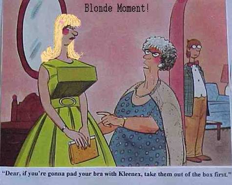One day a guy meets this blonde for the first time and notices how cute she is, so he wants to talk to her. He walks up and starts talking with her and notices she's wearing some small headphones. So he ask if she would take them off so she could hear him better while he talked to her. She replied "Oh no, if I take them off I will die!". So to be funny he snatches them off her head and runs and she goes after him. After about a minute of chasing the guy she collapses and starts turning blue. So he gives her mouth to mouth resuscitation (or mouth to mouth recreation, which ever you prefer). As she comes to, she grabs the headphones back and says I told you I would die without these and puts them back on her head. Stuned the guy ask if he could listen to what she's listening to? She tells him he can listen, but for only a few seconds and must give them back. He agrees and she hands him the headphones. He puts them on his head and hears,