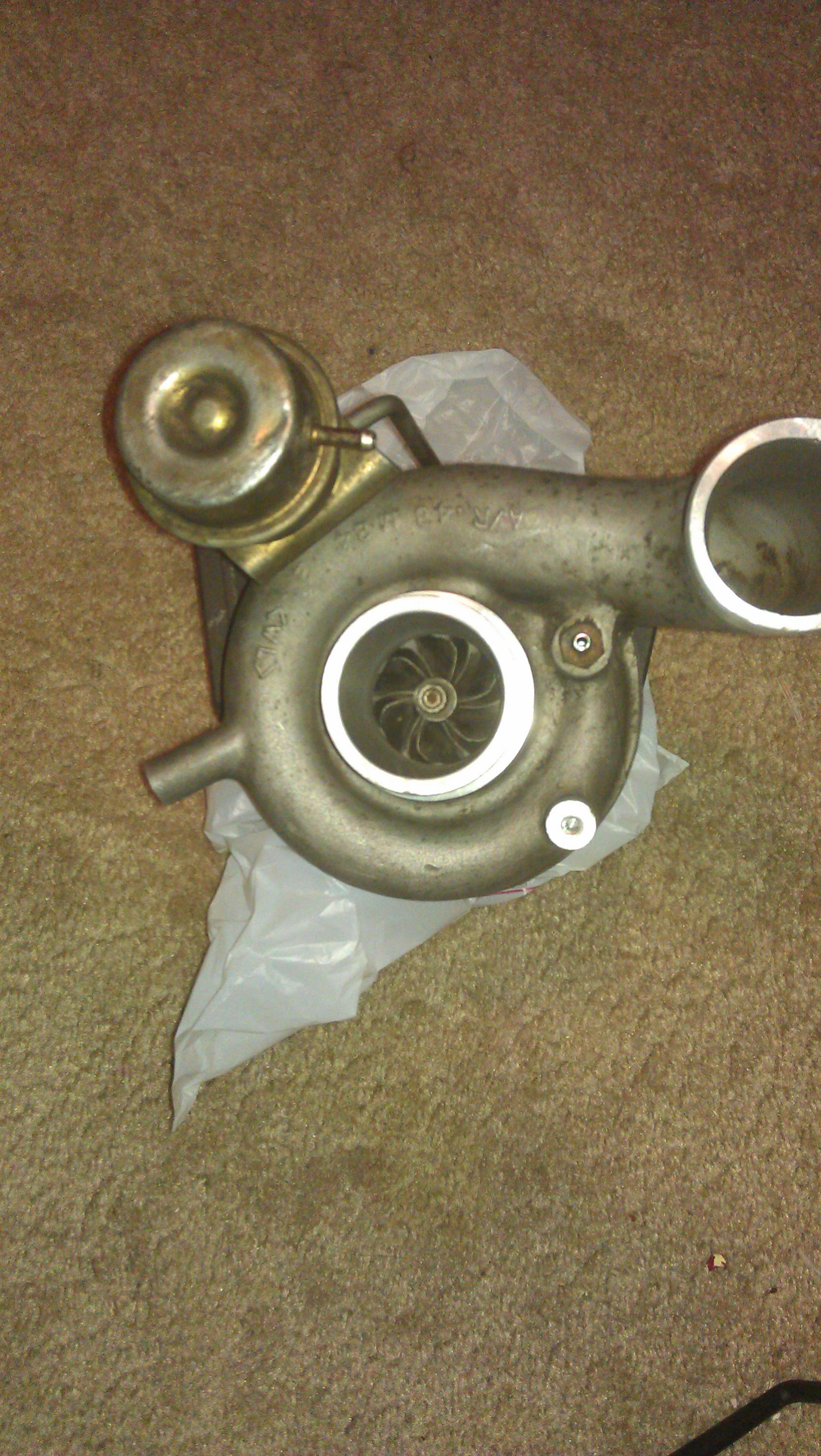 t25 turbo - out of a 98 gsx, it has very little side to side shaft play and no in-out shaft play. It spooled great when it was in my car. The fins are a tad bit chewed up but it is still in great working condition. $70 obo