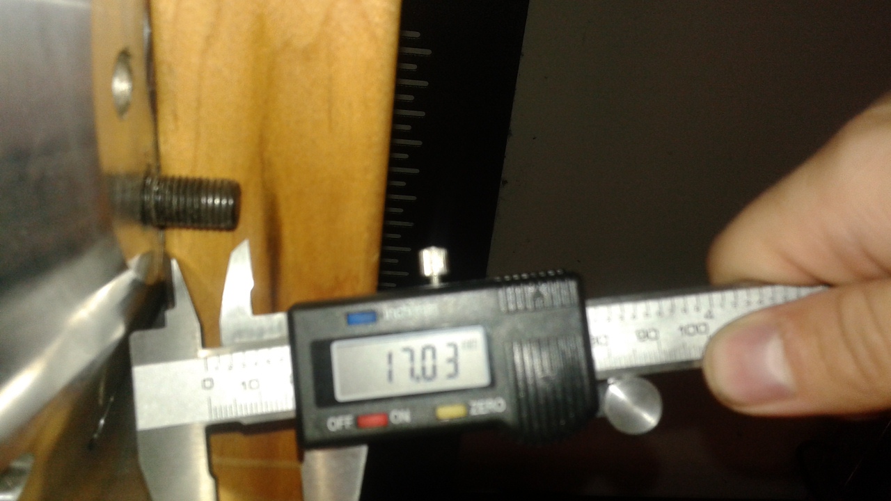 40mm with 2 washers, does not work and bottoms out on main cap (17.0mm protruding)