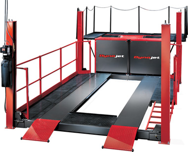 Expanding the Dyno Owner's capabilities, Dynojet has teamed it's industry standard chassis dyno with a 4-post lift. Now you can make changes to exhaust, gears, driveshafts and other drivetrain modifications right on the dyno. This greatly reduces the time in troubleshooting and R&D projects. Best of all, the lift can work separately from the dyno to perform multiple tasks in your garage. The dyno with the lift option is excellent for dyno owner's who lease their building and cannot construct a pit.