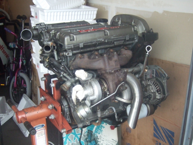 Standard 4G63. Fresh bottom end. Honestly can't remember the brand of rods/pistons. I do know that they are around 9.5:1 though. Head was ported, gasket matched on both exhaust and intake. 2G exhaust manifold with an EVOIII 16G using a stainless steel O2 housing that dumps the wastegate to the atmosphere. 650cc FIC injectors and some aftermarket cams that I can't remember.