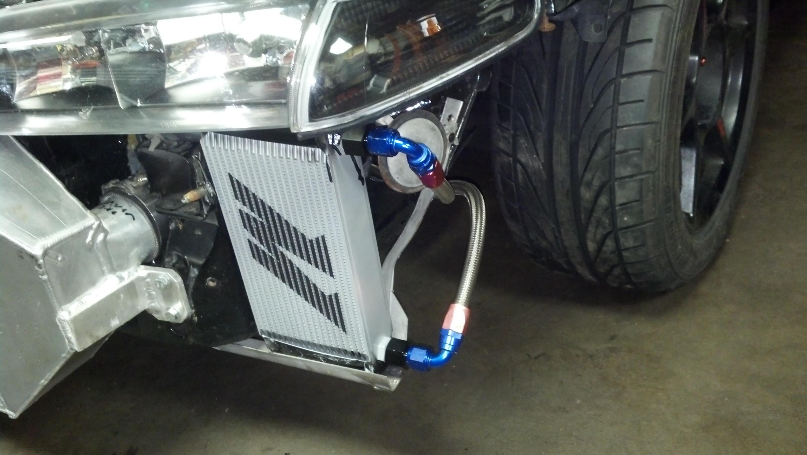 Last night we mounted up the oil cooler and filled the cooling system with coolant. I got the fittings to make my lines fit on the cooler but forgot them at work and wasn't going to go back and get them. So we're planning on finishing it up on Tuesday night and doing the initial start up and run it for 20min. Then it will sit until we get some spring weather.