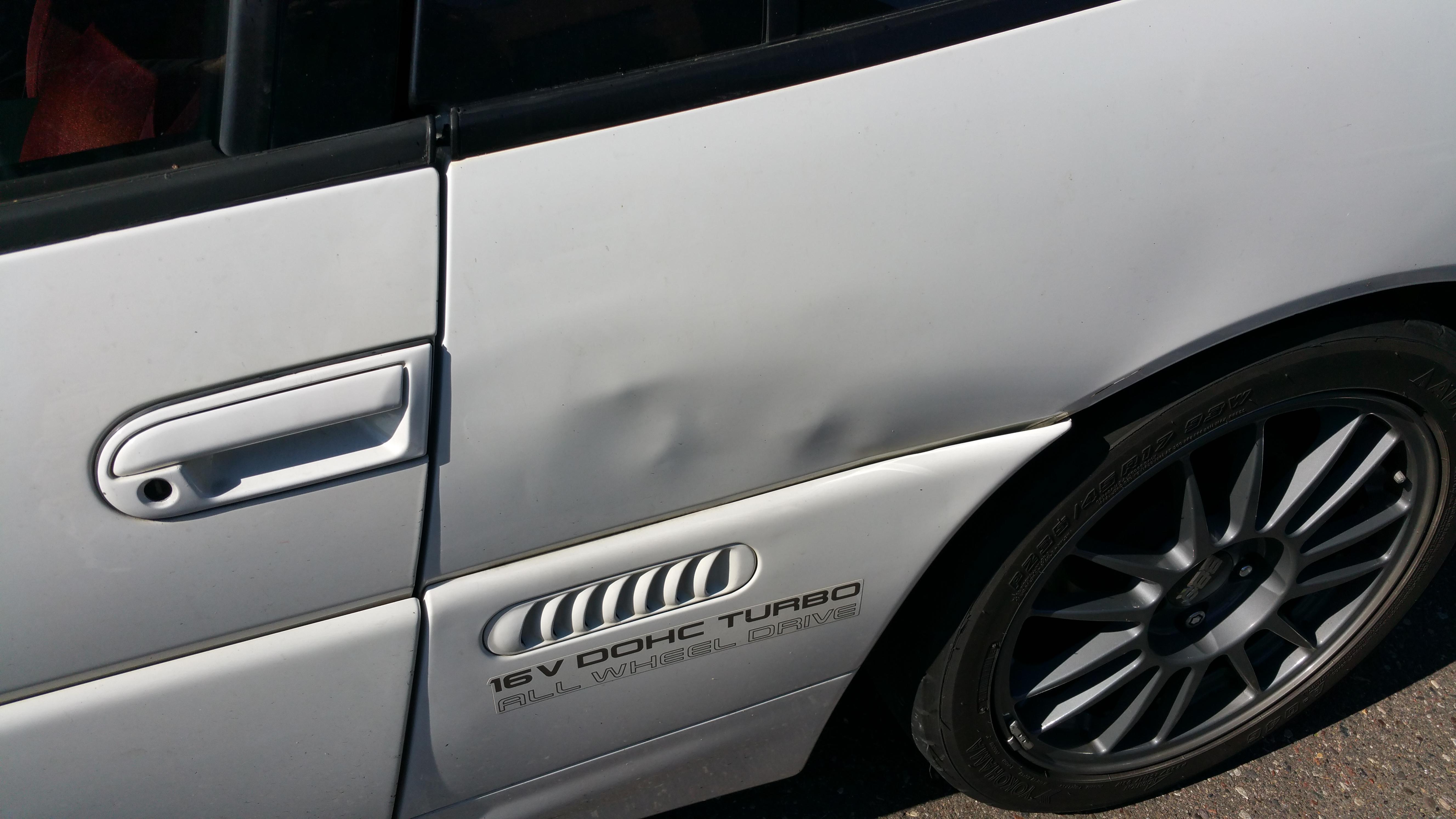 The behind driver's door could be removed with pdr I've been told. The fender is from a truck's bumper hitting and running I assume as I came out from a store to discover the damage.