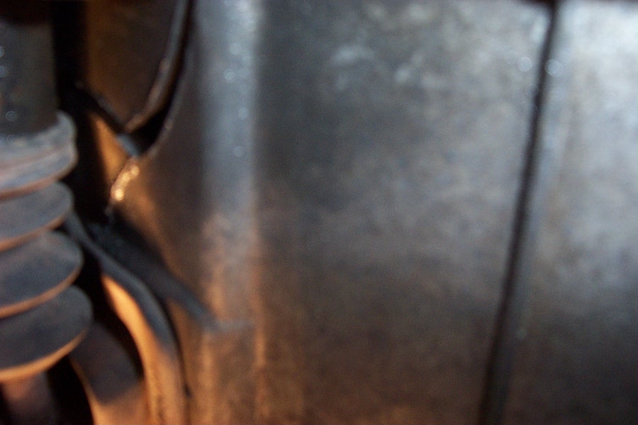 The second picture shows the split going all the way up and around to the top of the bellhousing!