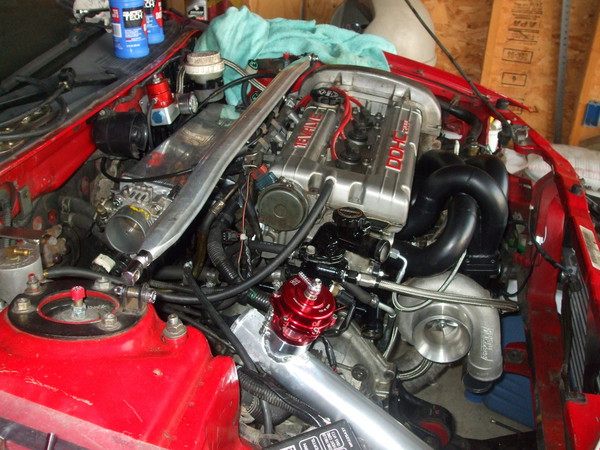 ^ first things start up. Then I will button things up and make them look better, I could have this thing on the road next week. BUT, I need to get at least 2 to 3 more things befoe tuning it. BAP,A1's, and make my exhaust. I am going to use the downpipe that I have on there and then cut the one that I had on there before and weld it to fit the downpipe.. I like everything about thermal exhaust better then the one that I was going to use.