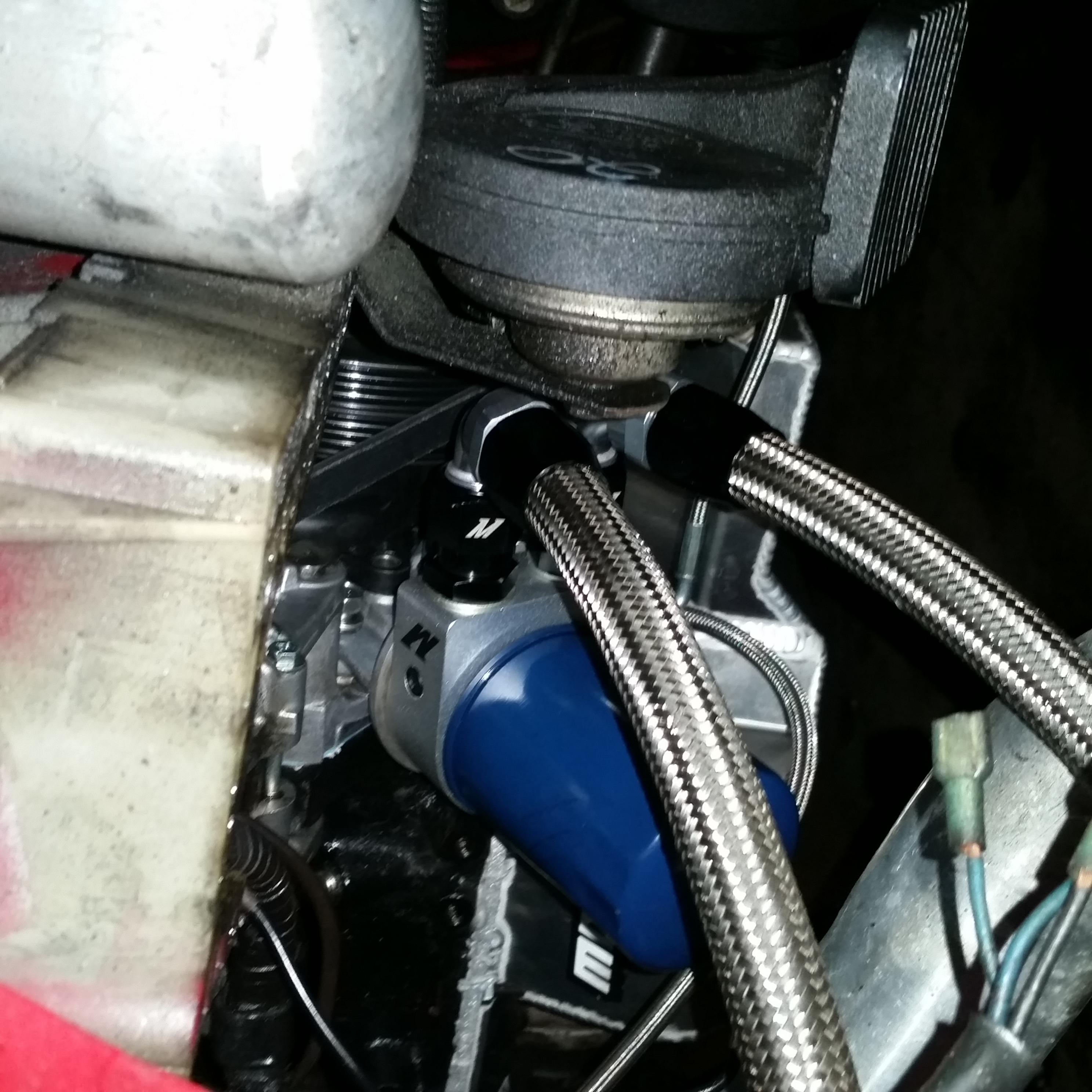 Currently the lines running/mounted behind the fmic I ran into an issue where they weren't long enough avoid the i/c piping (I couldn't rotate the fitting enough to clear)