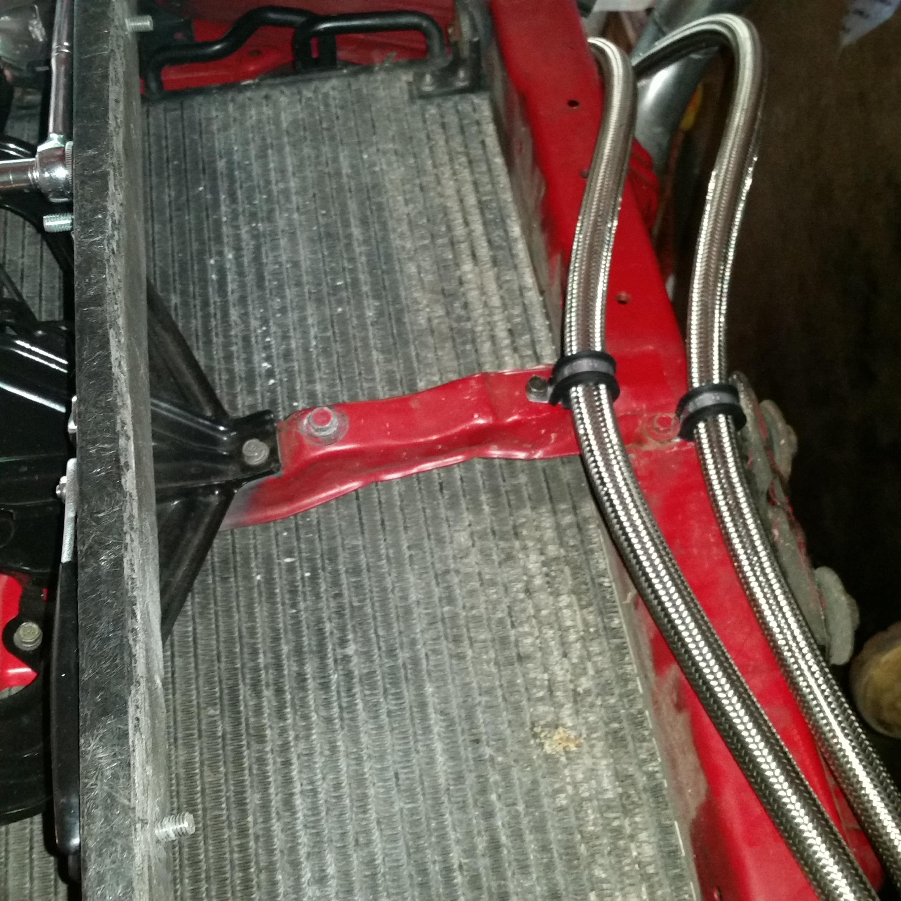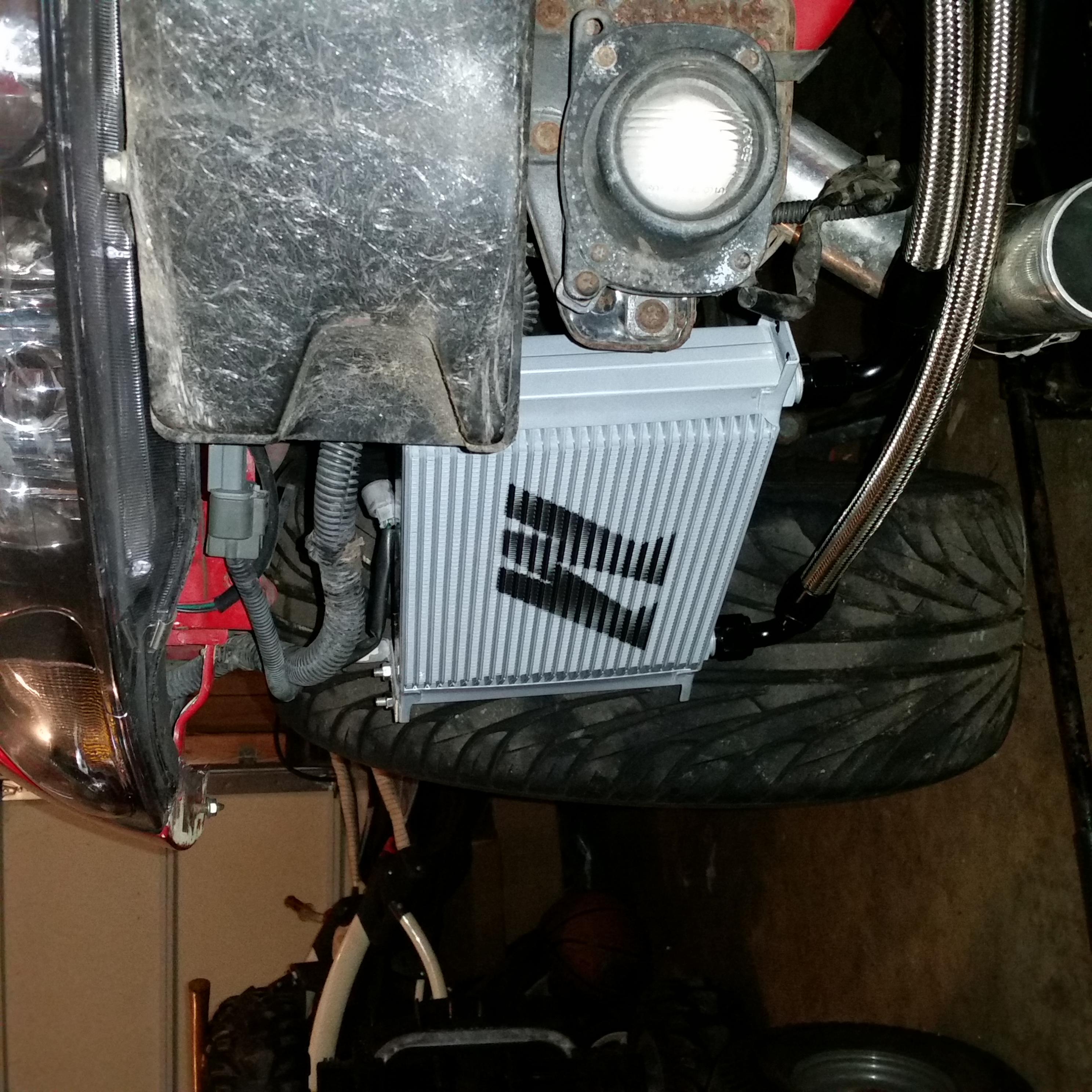 Almost finished with the Mishimoto 25 Row universal kit install.
