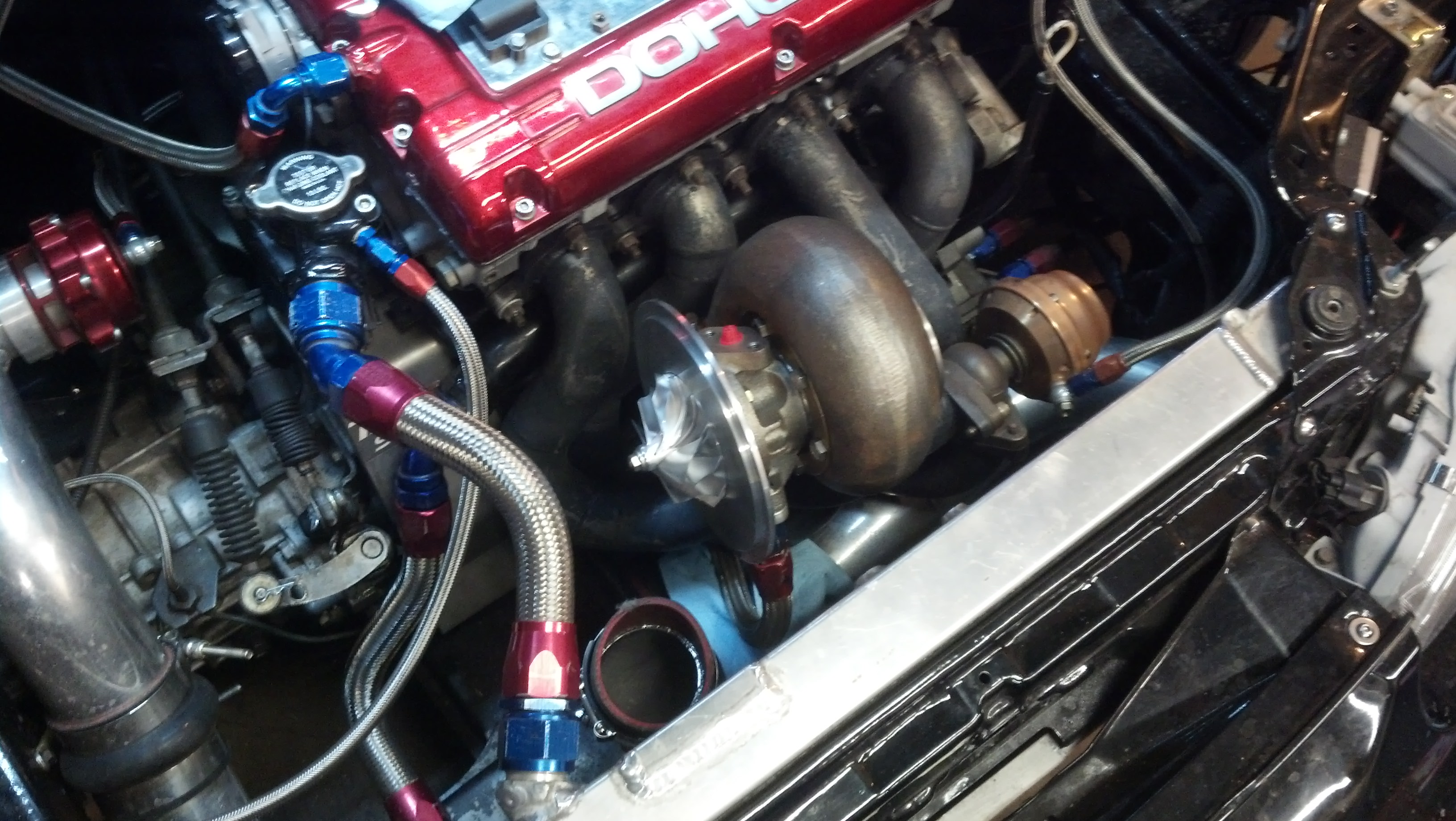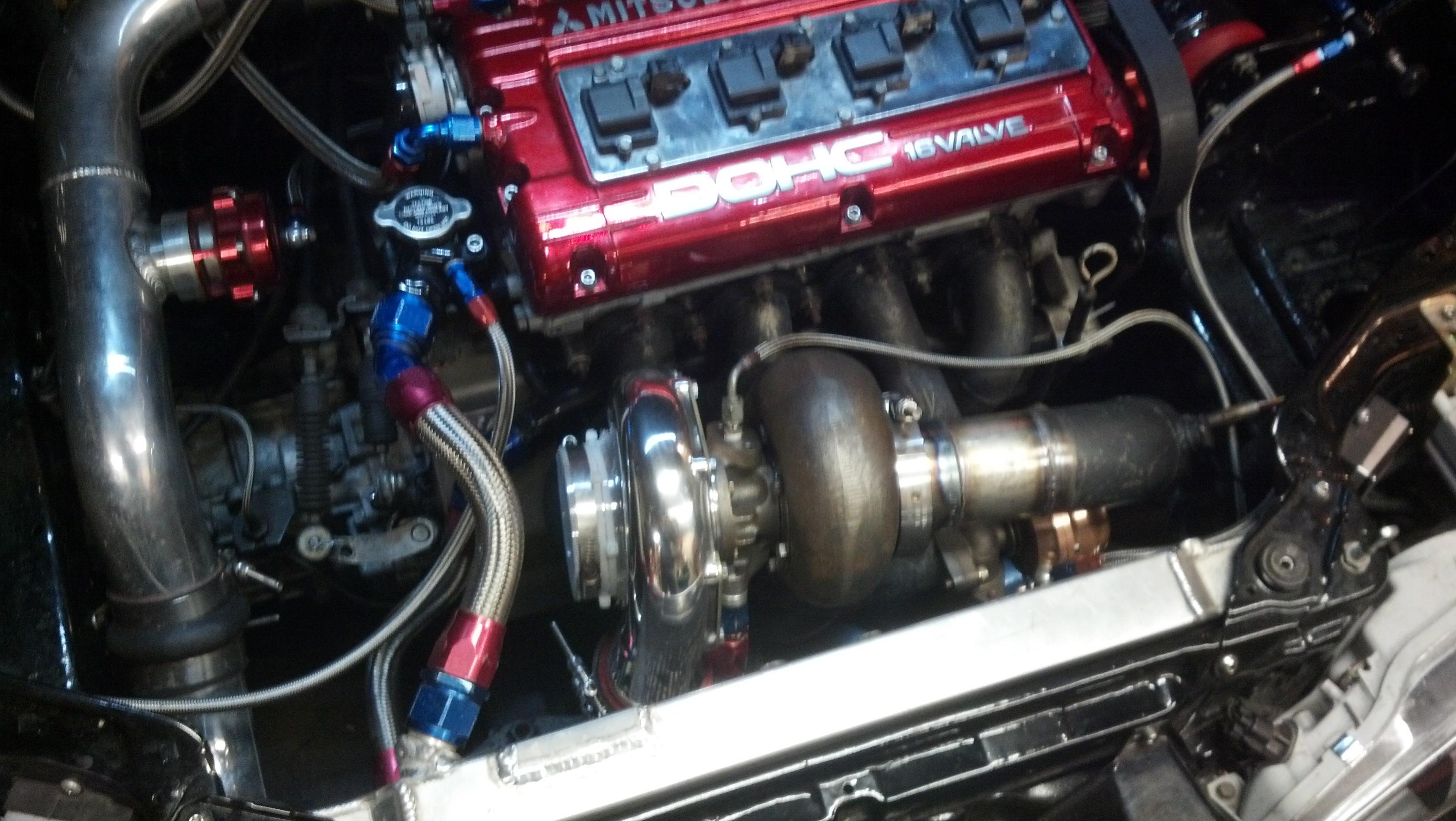 Also between yesterday and today I've put about 200 miles on the car so the engine now has over 400 miles on it. She's just about ready for the dyno. And big thanks to John (pushit2.0) for letting me swap turbos and his place then redoing my exhaust and intercooler pipe!